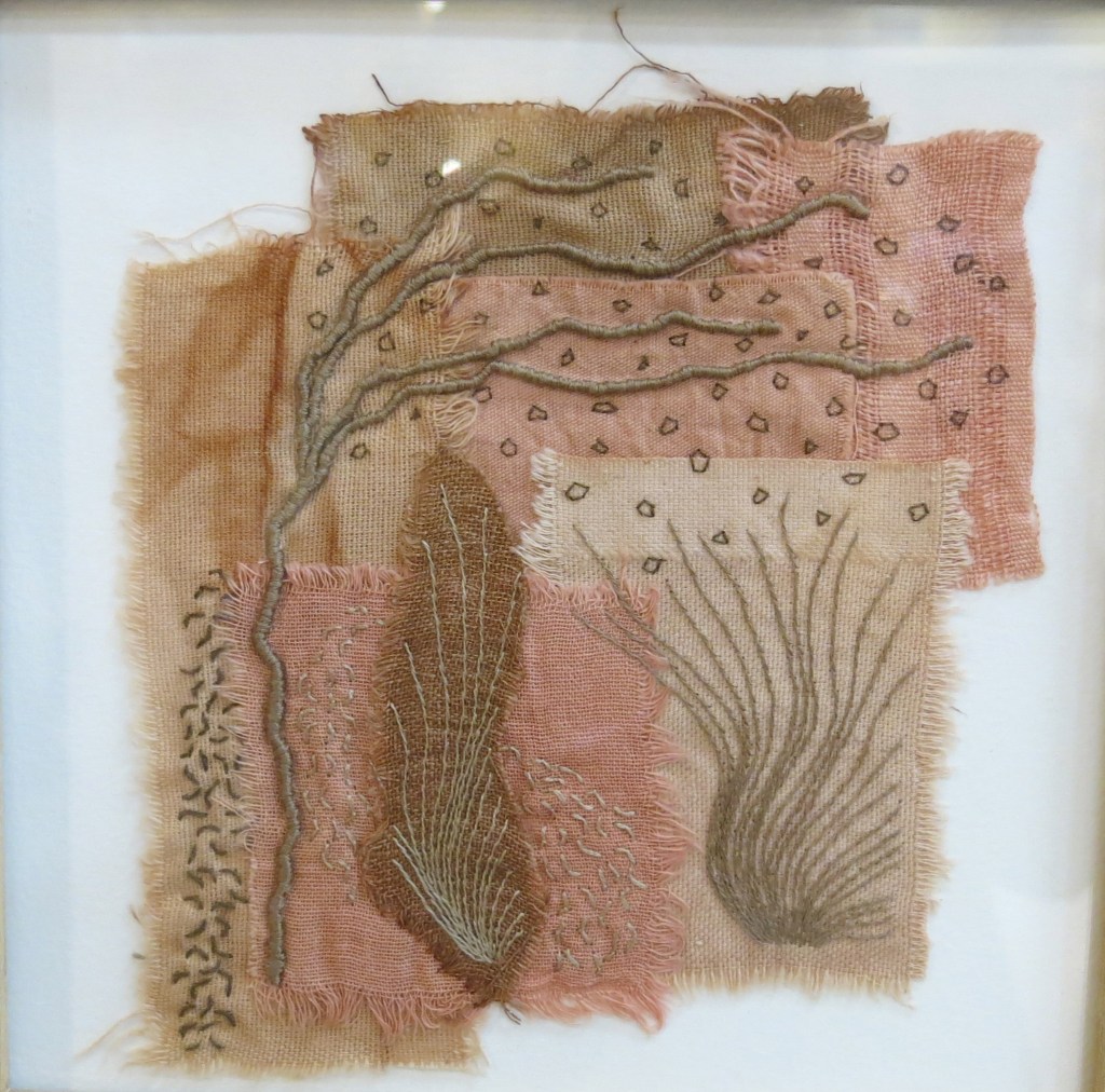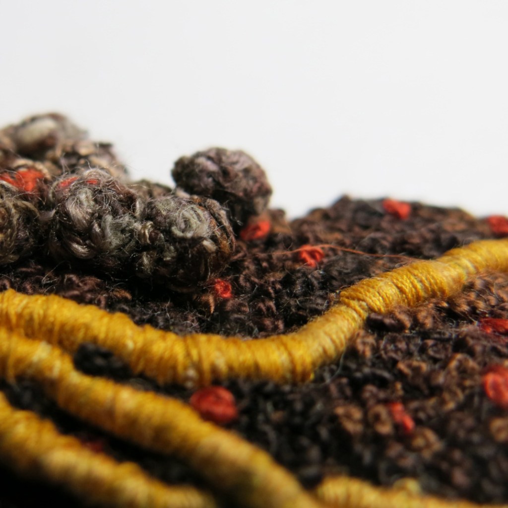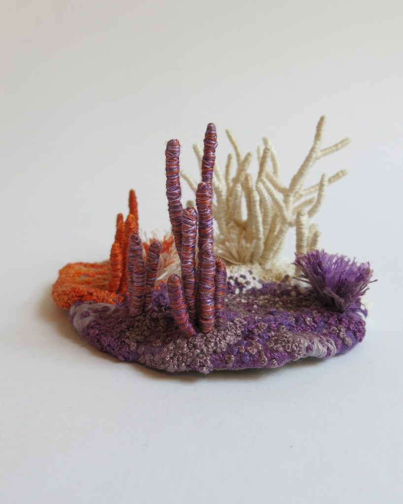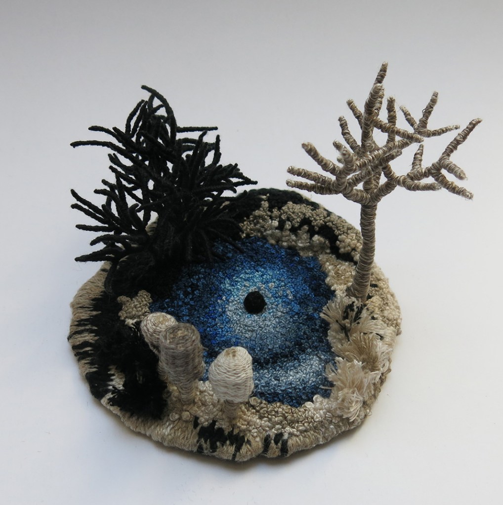 « J’assemble et brode des fils pour leur donner du volume, de la profondeur afin de créer des paysages imaginaires ou plus intimes. Mon rapport à la nature, comme sujet artistique et façon de vivre, s’invite de plus en plus fréquemment dans ma pratique. »