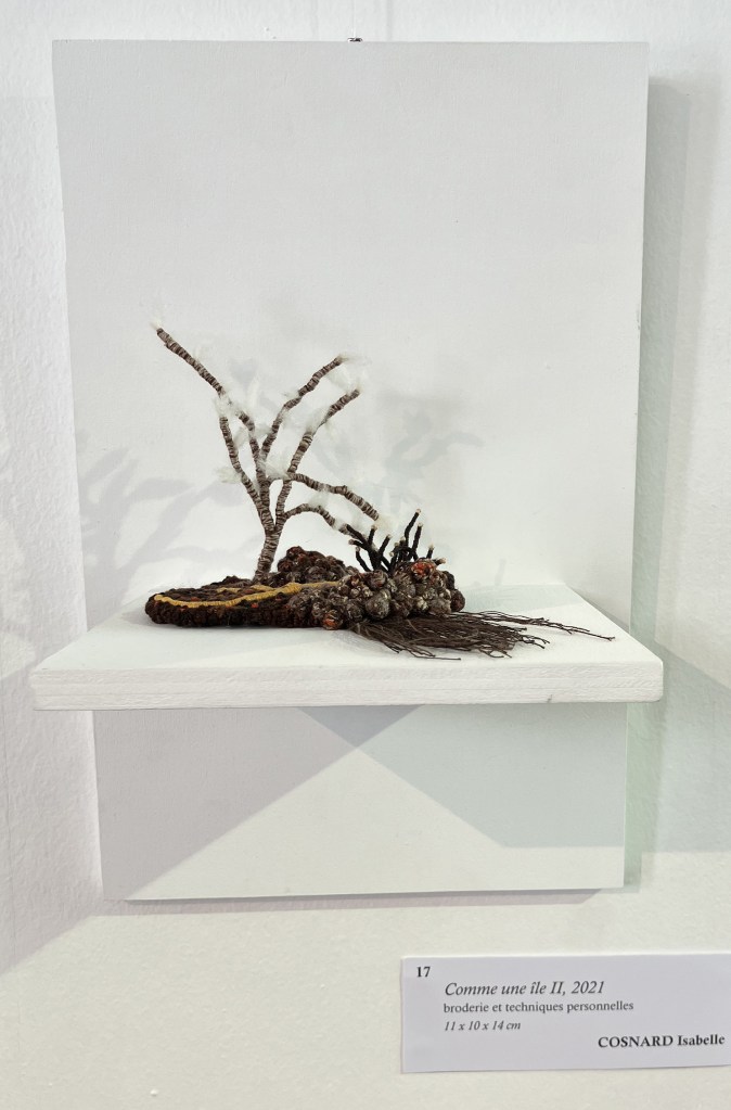 Île XII sélectionnée pour le concours international des Mini-textiles à Angers sur le thème Tisser le FuTur. Elle est exposée au musée Jean Lurçat et de la tapisserie contemporaine, du vendredi 4 avril 2025 au lundi 4 janvier 2026.