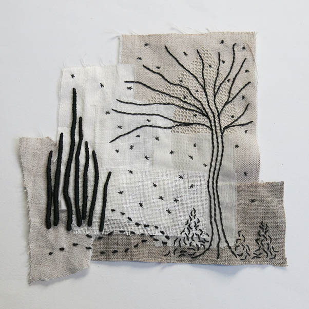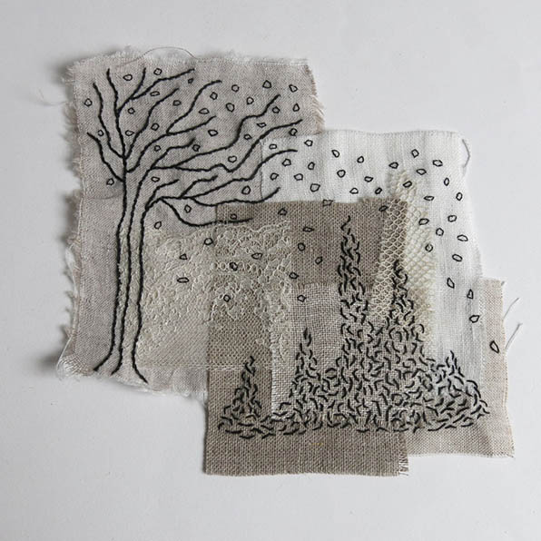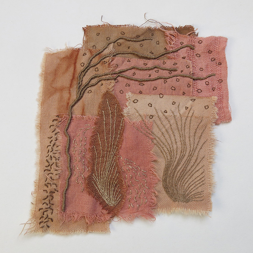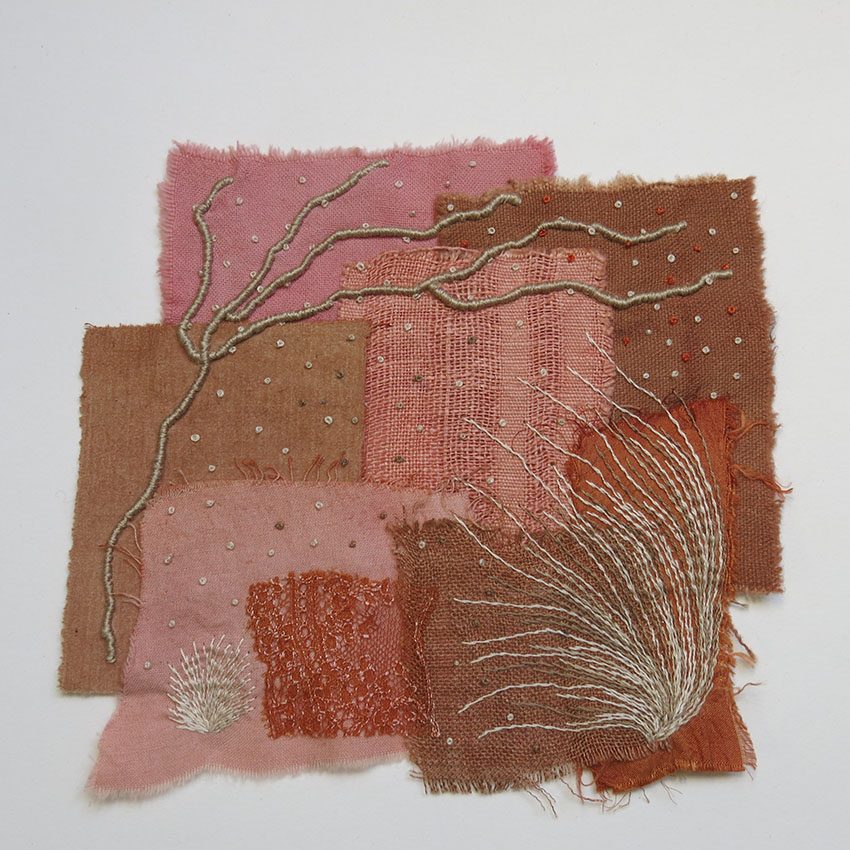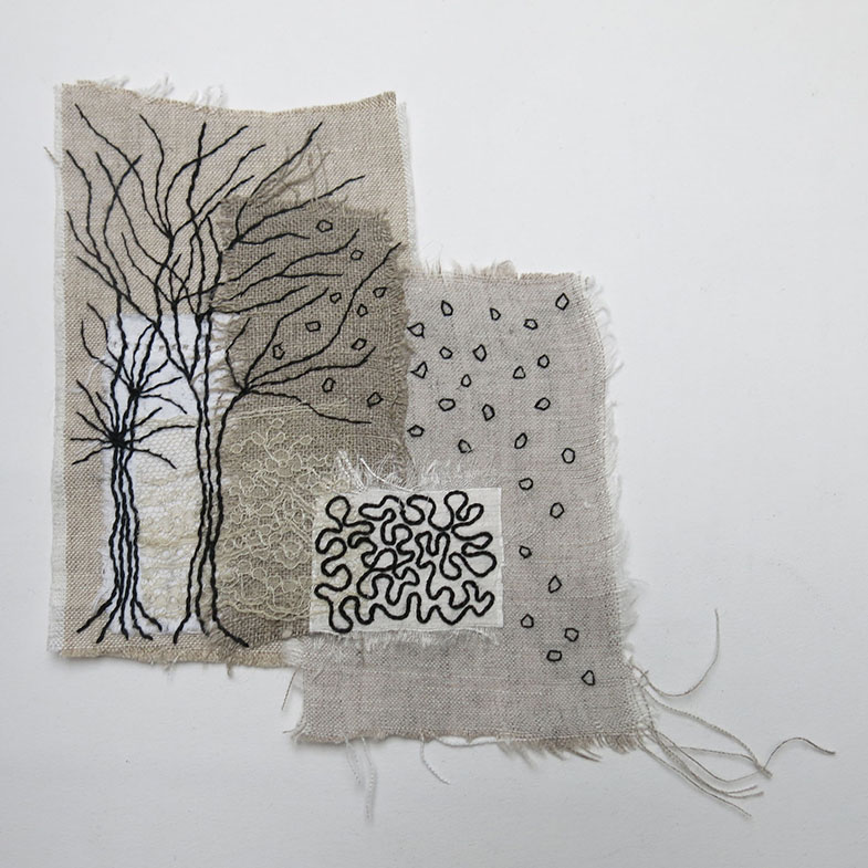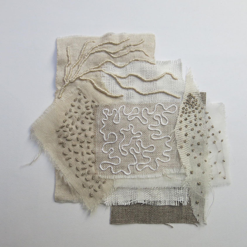 Assemblage par broderie, coton, soie, dentelle, coton perlé et mouliné