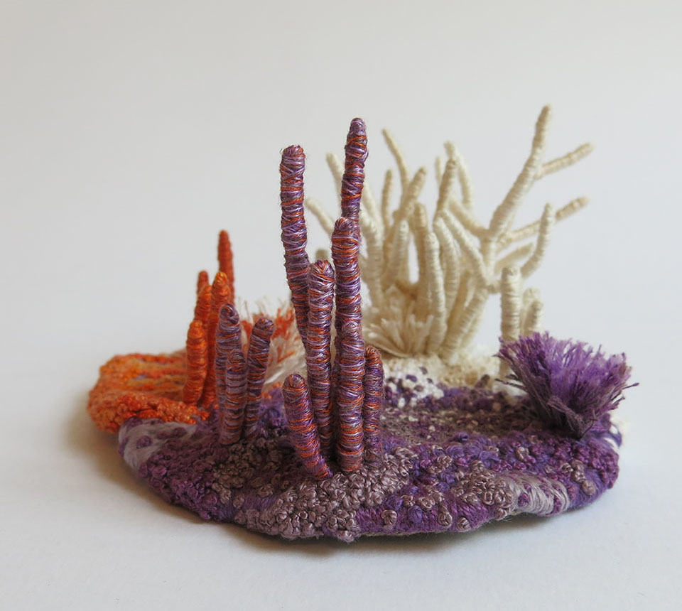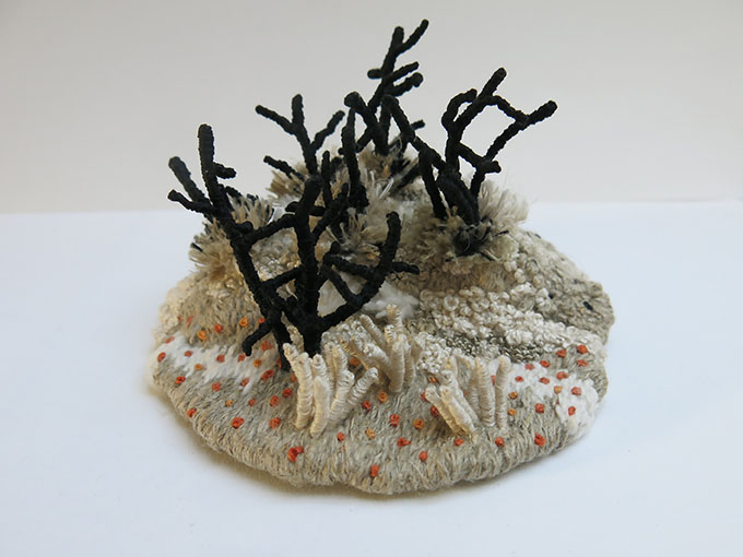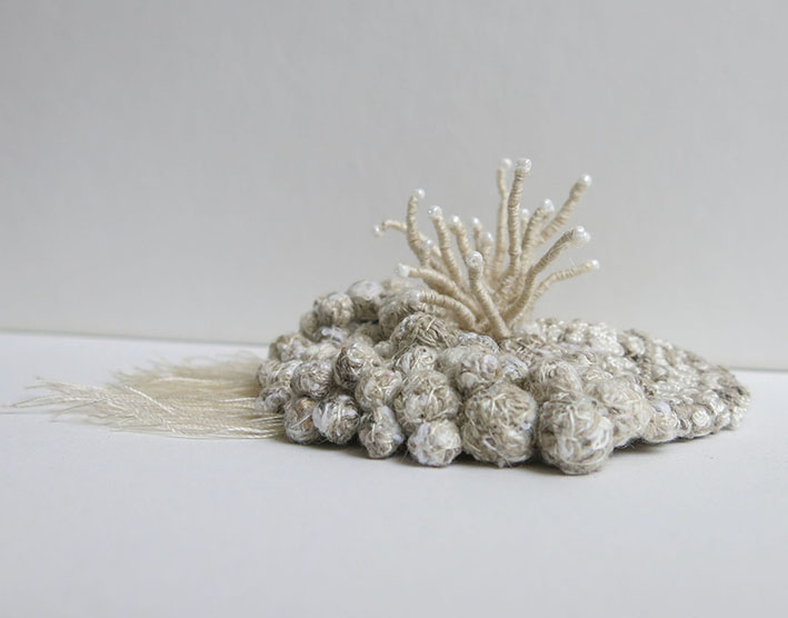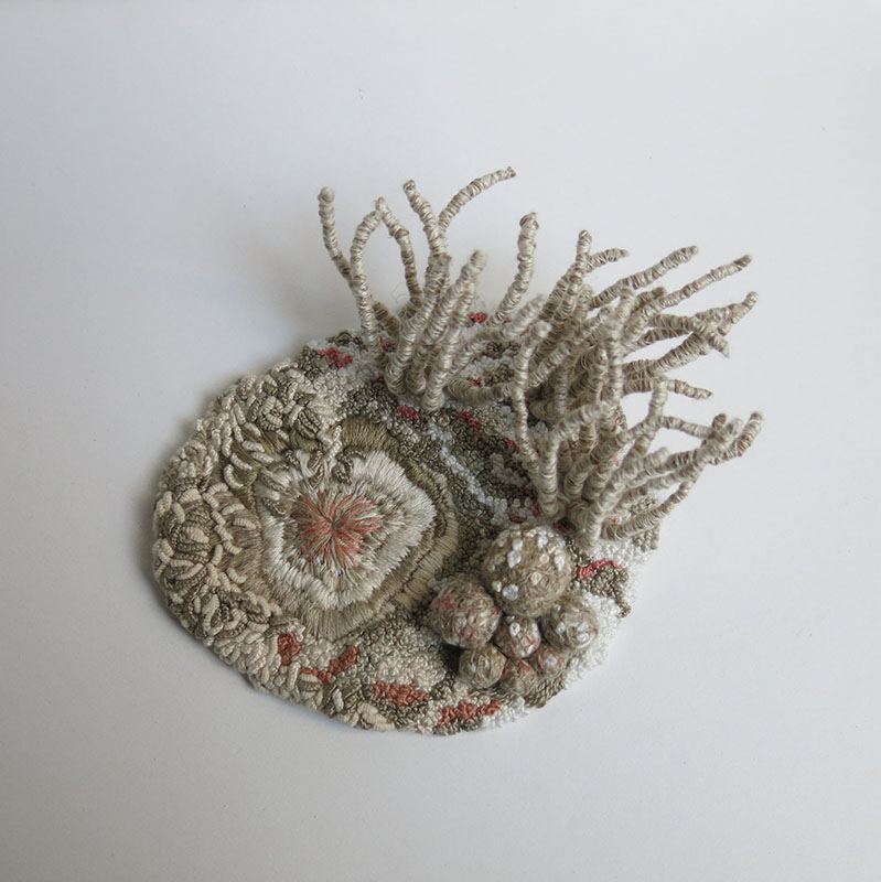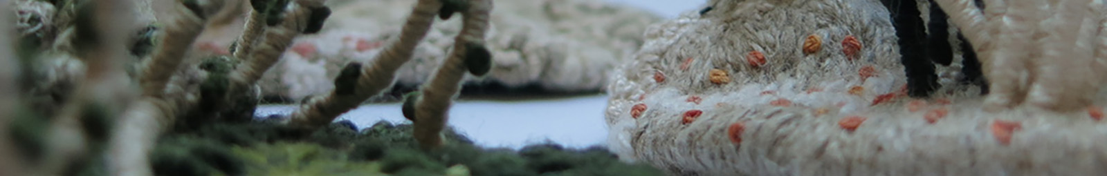 Broderie sur coton, coton perlé, ficelle de chanvre, fils divers