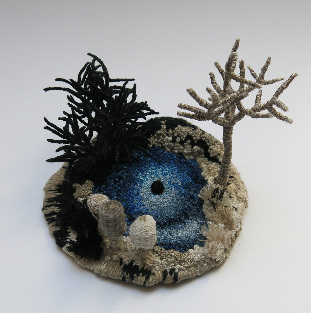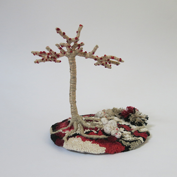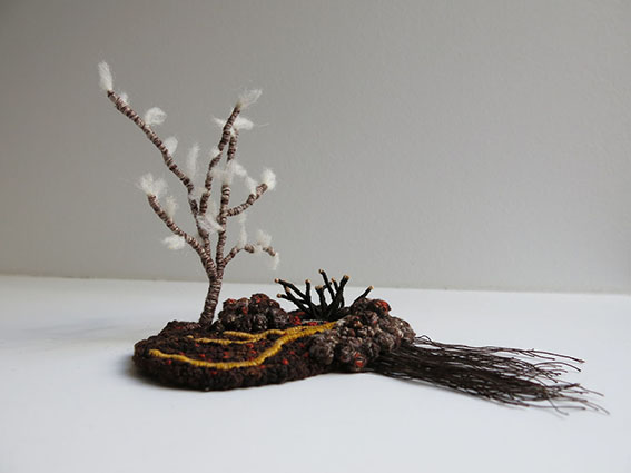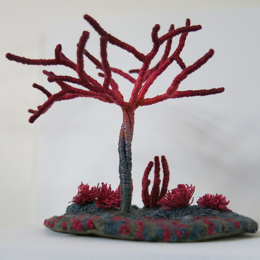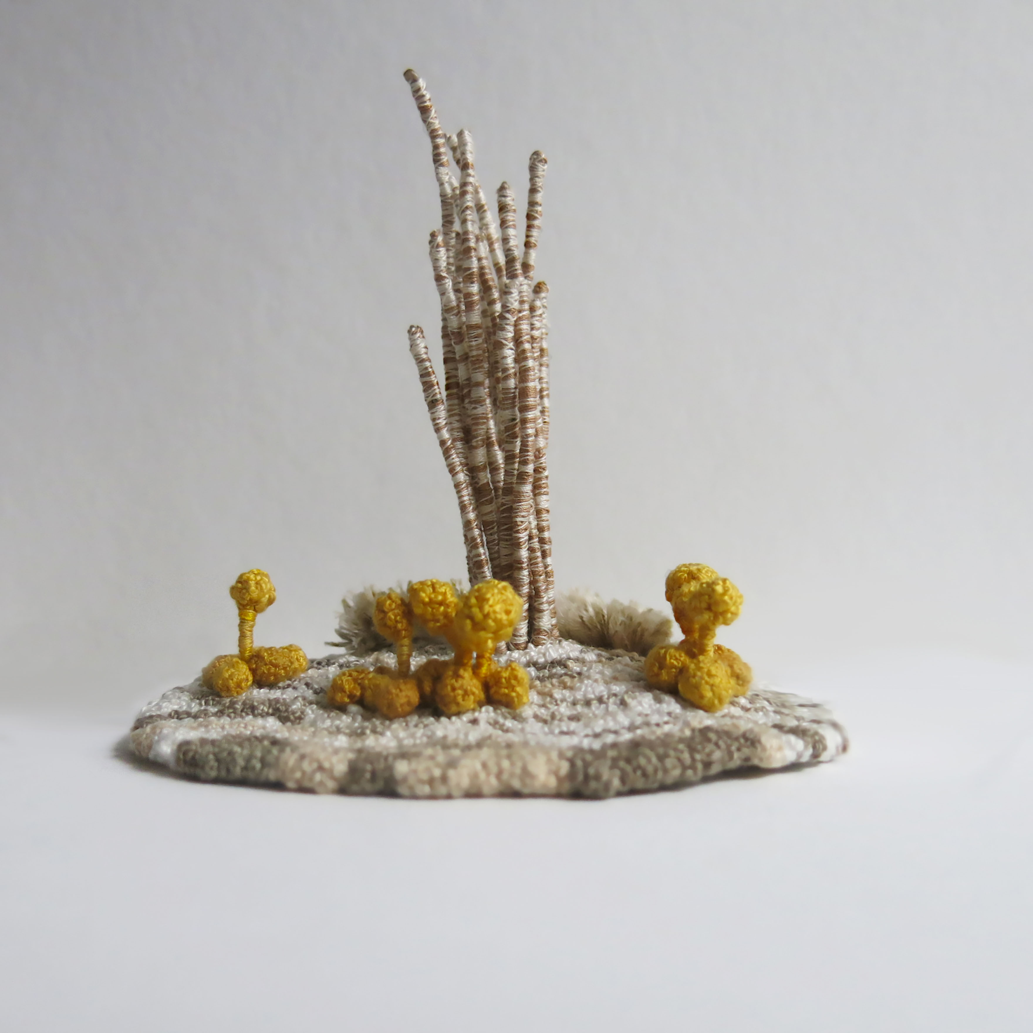 Broderie sur coton, coton perlé, ficelle de chanvre, fils divers